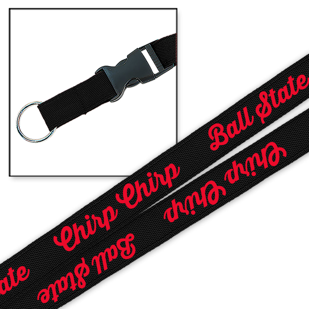 Go Cardinals! This Ball State lanyard is perfect for move in, or around campus! This lanyard features a black base, with a red Chirp Chirp decoration that will really make your Ball State spirit shine through! This is an officially licensed collegiate product.