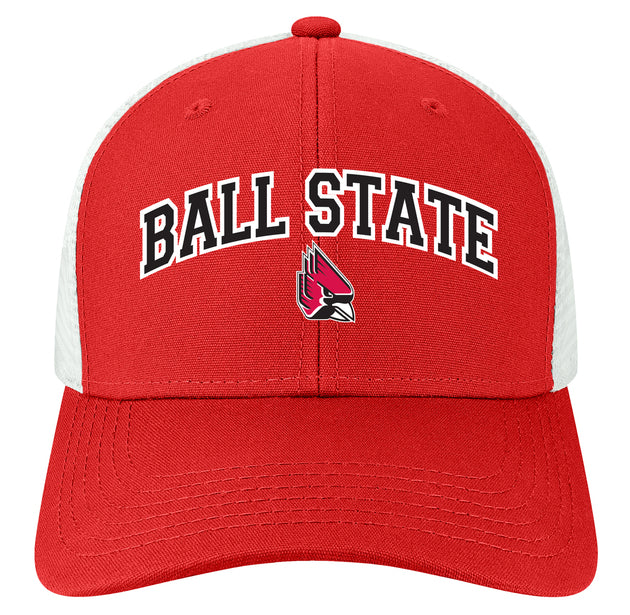 Go Cardinals! This Ball State hat is a perfect way to show your Cardinal spirit. This new trucker hat features a red front with a black/white "Ball State" embroidered above a Cardinal head logo and white back that makes it great for campus wear, games, and more. Get this BSU hat today to show off your Ball State pride! This is an officially licensed collegiate product.
