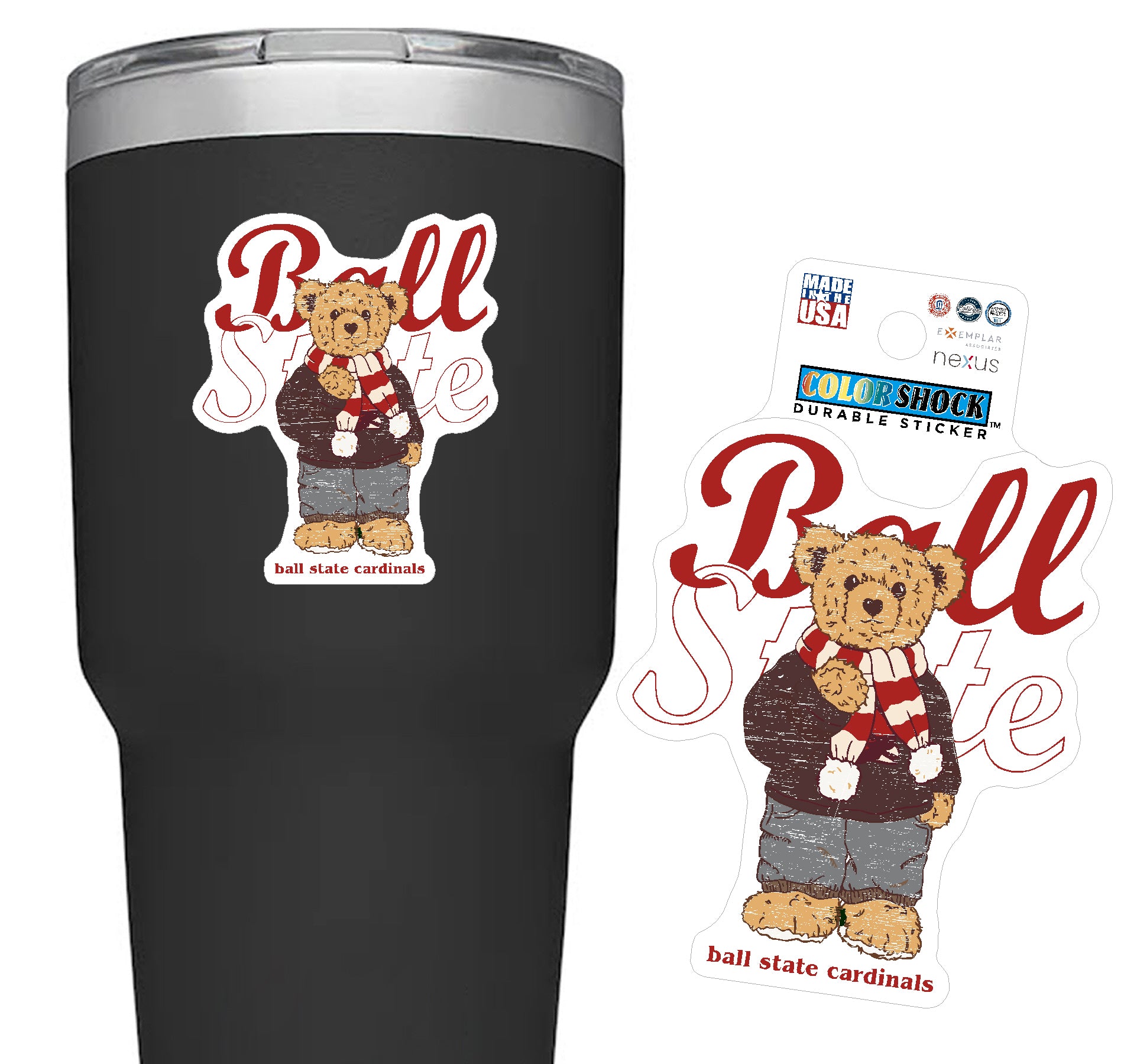 Show your Cardinal pride! This Ball State sticker is perfect for any Cardinal fan. This BSU sticker features a stuffed bear wearing a black and red Ball State sweater that makes it great for sticking anywhere. Don’t miss out on this new Cardinals sticker to show your spirit! This is an officially licensed collegiate product.
