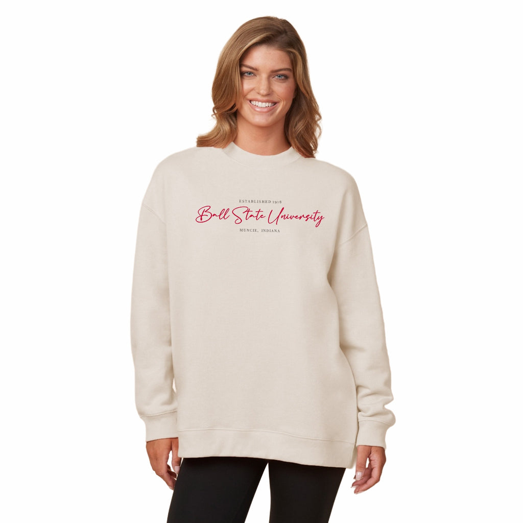 Ball State Sweatshirt Women's Tan Script Crewneck