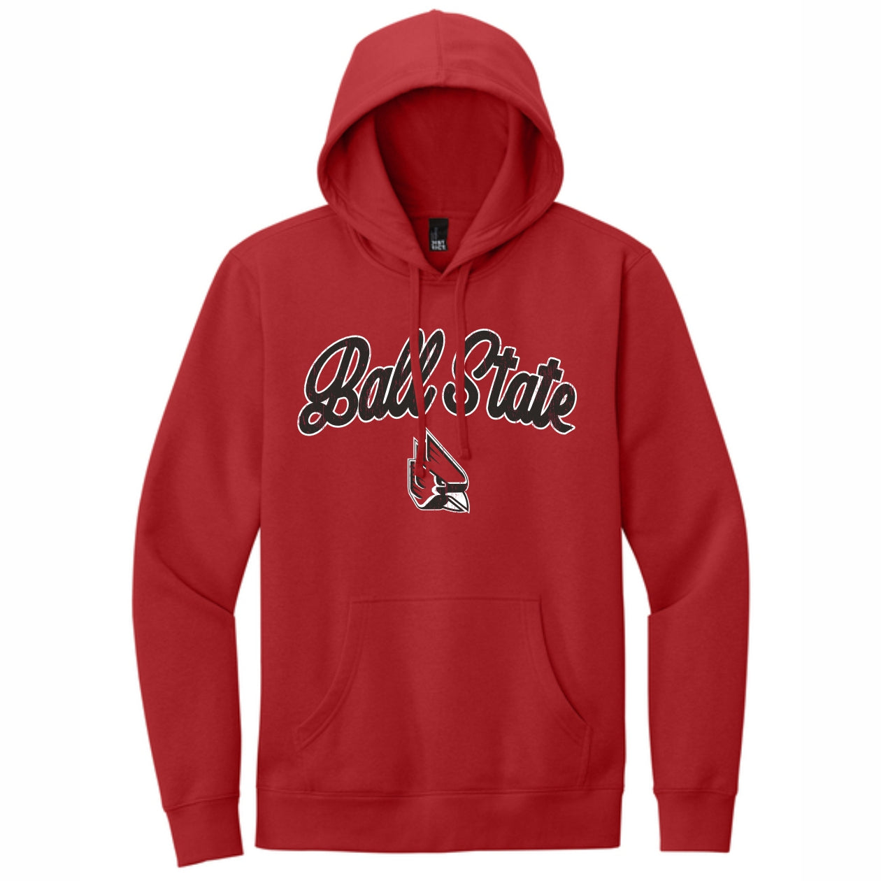 Go Cards! This Ball State hoodie is perfect for wearing to games or around campus. This red fleece pullover features a black/white script "Ball State" arched over a Cardinal logo. This BSU merch is great for showing your Cardinal spirit! This is an officially licensed collegiate product.