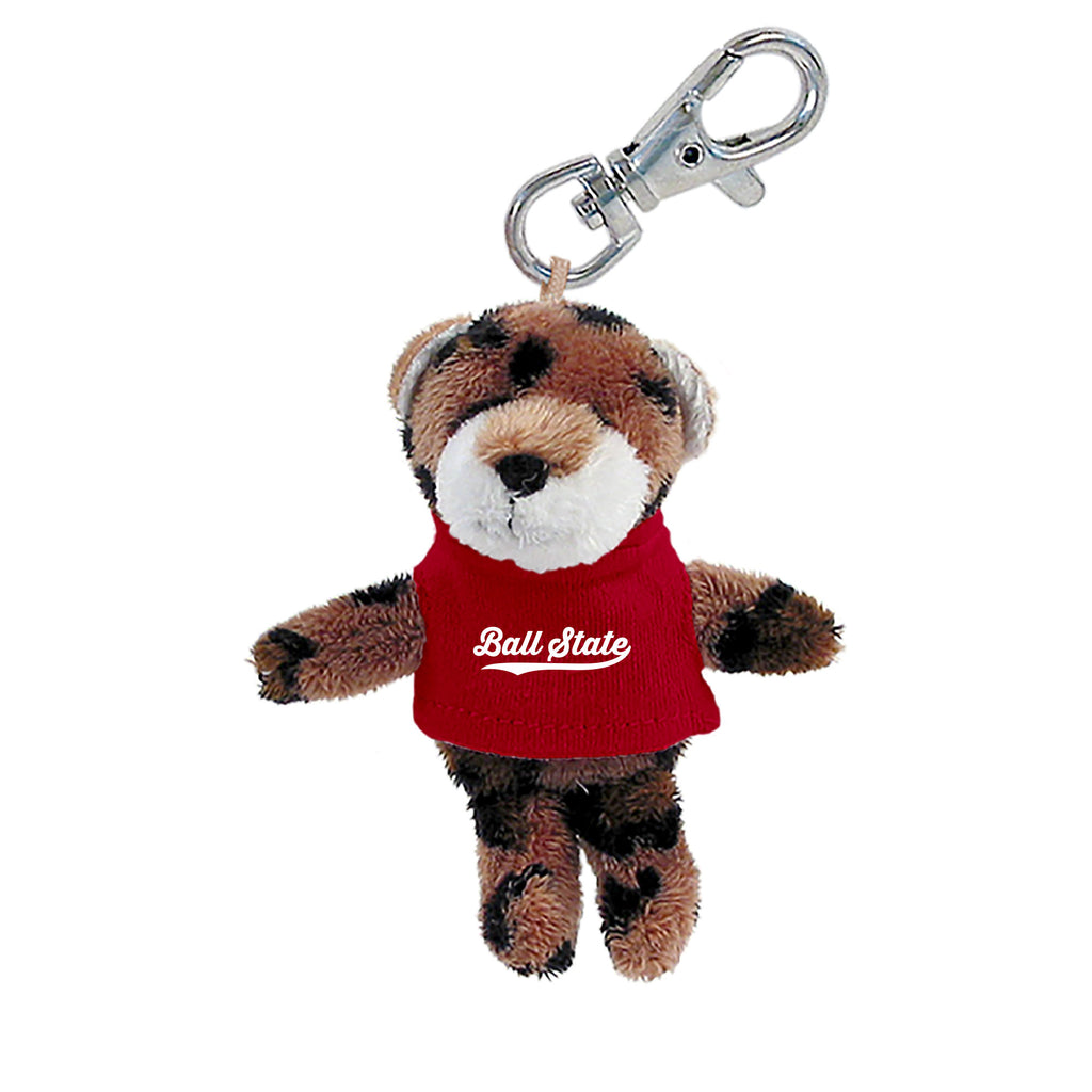 Go Cardinals! This Ball State keychain is perfect for your keys! This keychain features a small stuffed leopard wearing a red Ball State shirt that will really make your Cardinal spirit shine through! This is an officially licensed collegiate product.