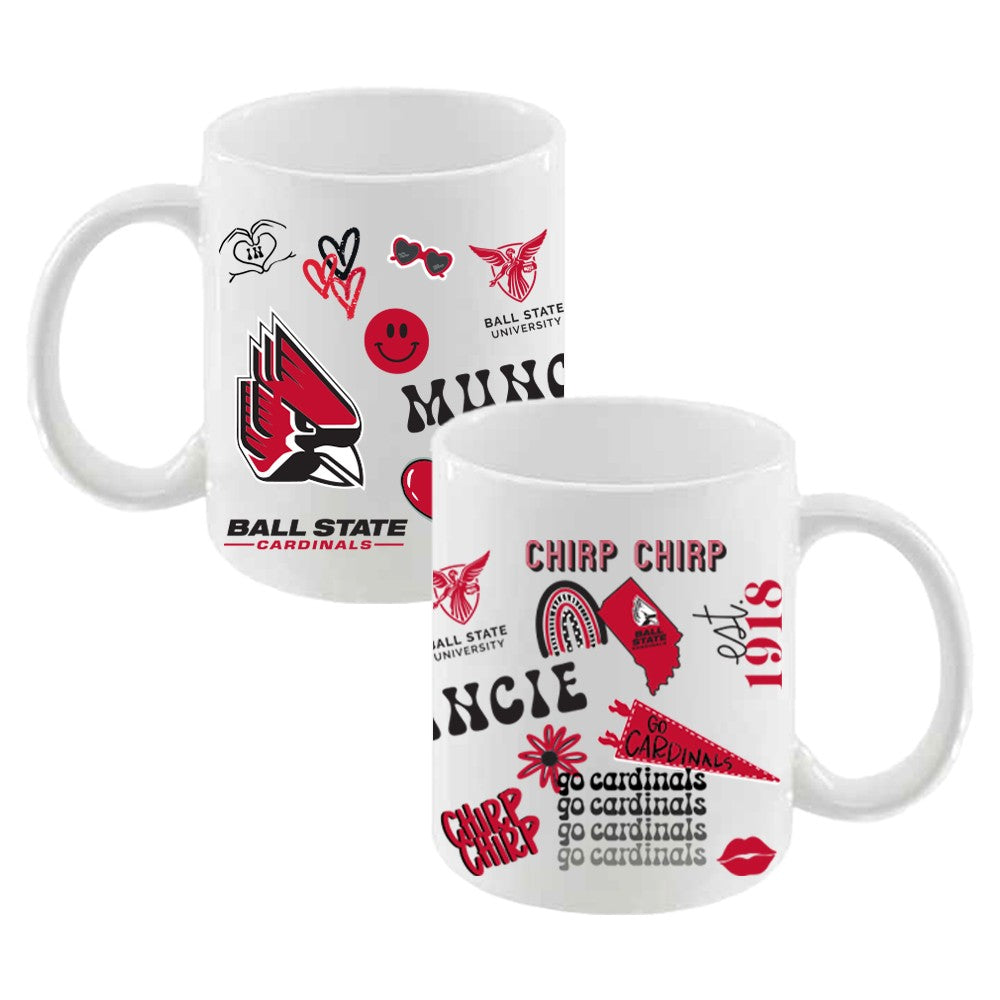Go Cardinals! This Ball State mug is perfect for showing off at tailgates or the office! This mug features a white 11oz body with a scattering of red/black BSU logos that will really make your Ball State spirit shine through! This is an officially licensed collegiate product.