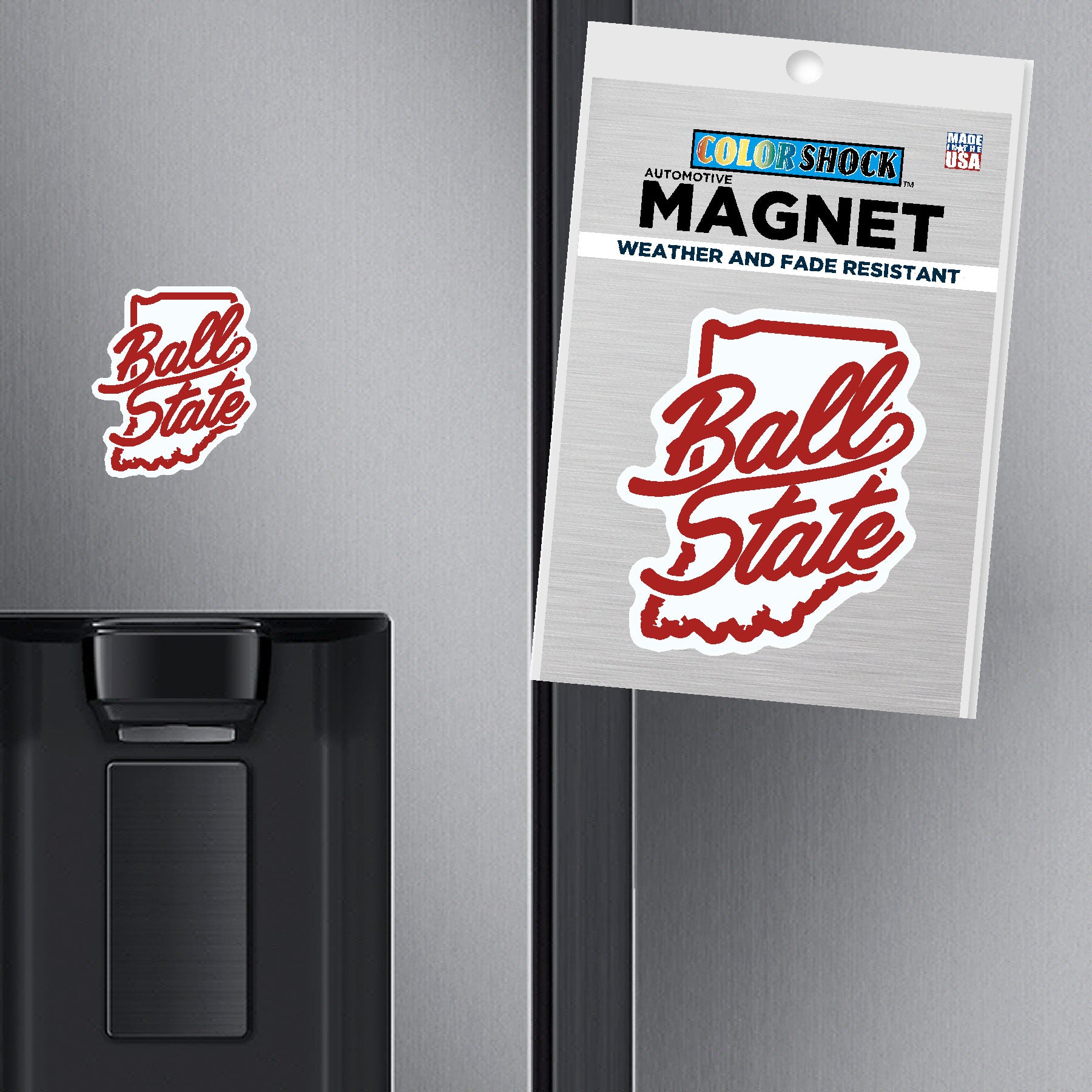 Go Cardinals! This Ball State sticker is perfect for decorating your home/office, water bottle, or even laptop! This sticker features a white Indiana-shaped background with a red outline and red script "Ball State" that will really make your Cardinal spirit shine through! This is an officially licensed collegiate product.