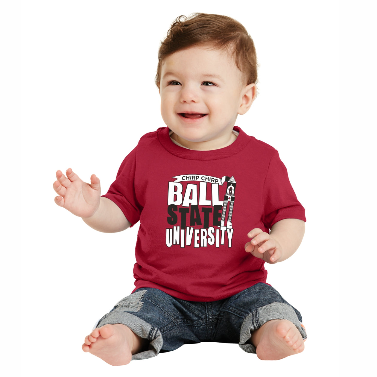 Go Cardinals! This Ball State infant t-shirt is perfect for your little Cardinal fan! This BOGO tee features a red body with a black/white Ball State University tower design that will really make your little one's Cardinal spirit shine through! This is an officially licensed collegiate product.