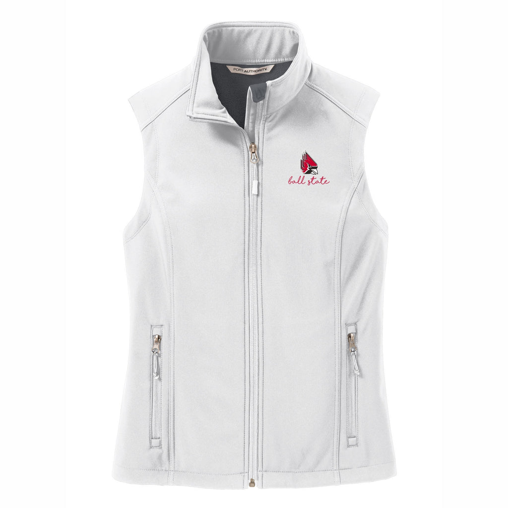 Go Cardinals! Get this Ball State vest and everyone will be able to see your BSU pride! When you wear this BSU vest to the next game, you will stand out in the crowd! This women's piece features a white zip-up front with a Cardinal logo over a red script "Ball State" on the left. Get one today to show your Cardinal spirit! This is an officially licensed collegiate product.
