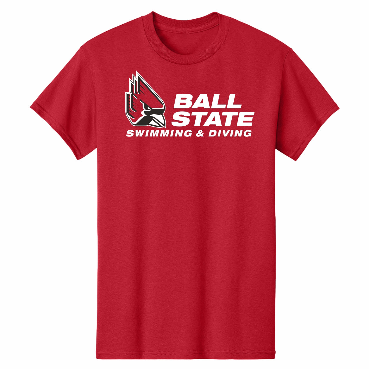 Go Cardinals! Get this BSU Cardinals Men's Swimming & Diving T-Shirt and everyone will be able to see your Ball State pride! When you wear this Gameday Gear tee to the next game, you will stand out in the crowd! This t-shirt features a red body with white "Ball State Swimming & Diving" text alongside a Cardinal logo. Get one today to show your Cardinal spirit! This is an officially licensed collegiate product.